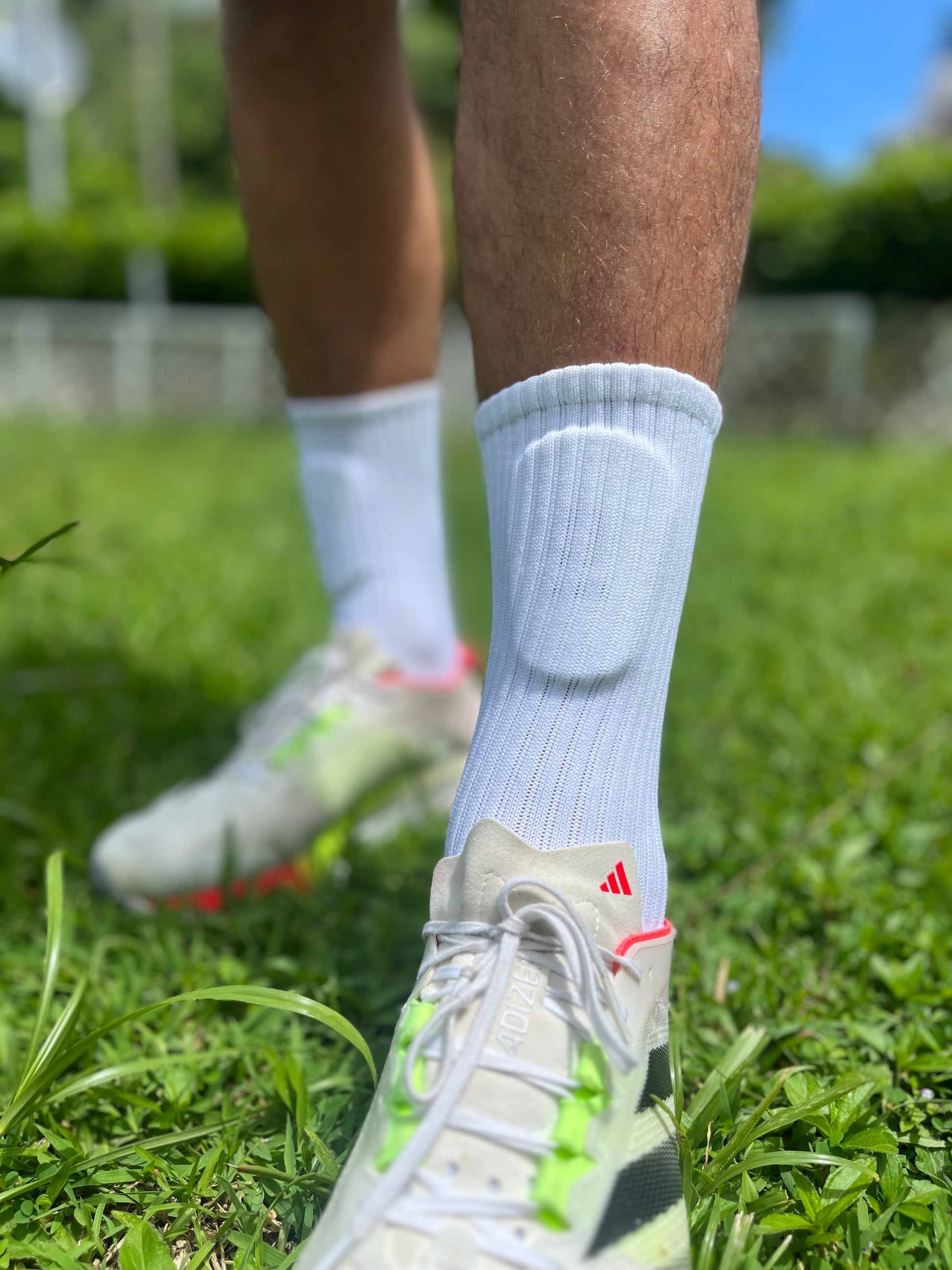 This bundle includes- 6x pairs of performance grip socks and 1x pair of mini shin pads